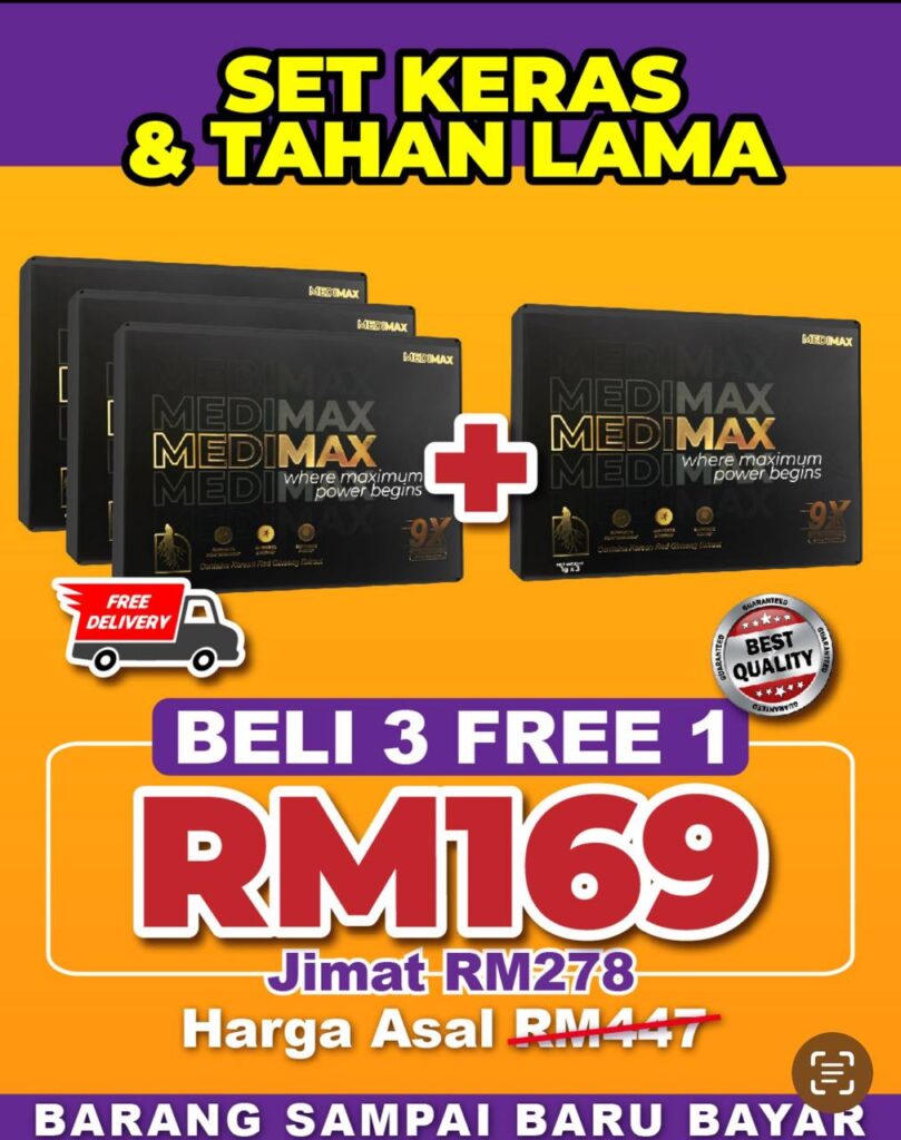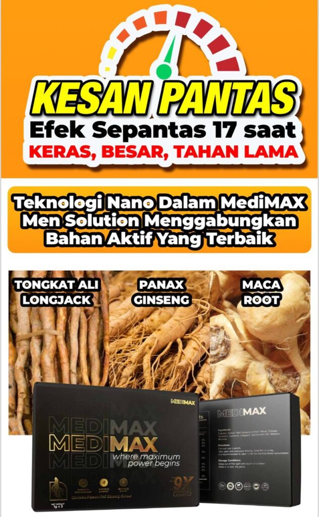 MEDIMAX terbukti berkesan membantu Tambah Gameplay Bossku + Menambah saiz zakar, menguatkan zakar serta membantu zakar keras dan berurat.